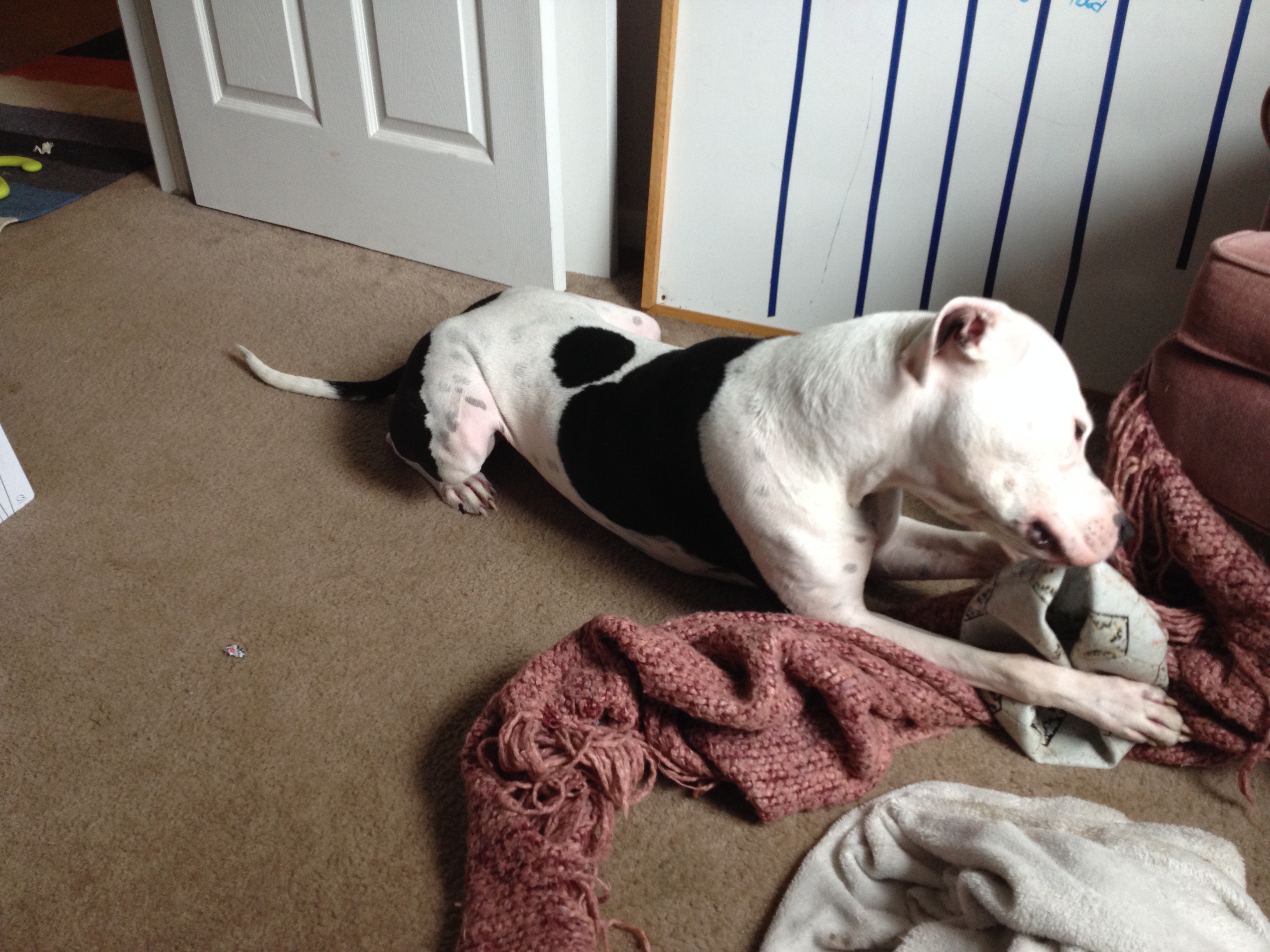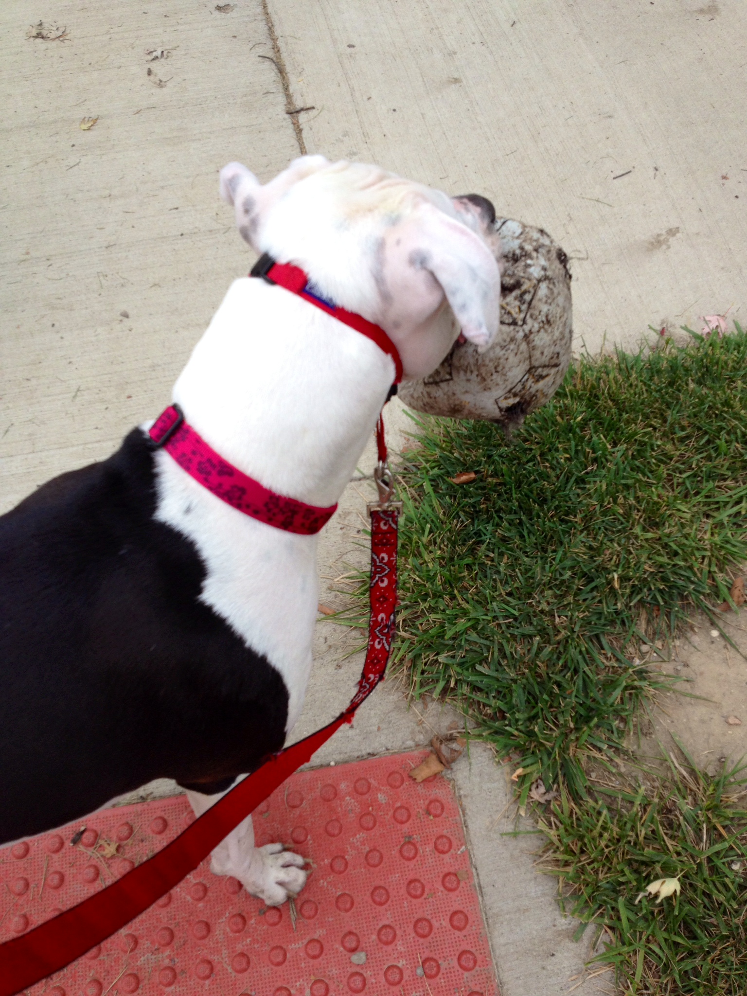 Seriously. She wouldn’t put it down, so Mike let her carry it home. The two of them got so dirty playing together (Ball and Lois, not Lois and Mike) that she had to stay in the backyard for the next two hours – where they played together the whole time. Then Mike and I took her for a 45 minute walk. She brought Ball along, carrying him the whole way. Finally, I decided if she wasn’t going to put the disgusting thing down after four hours, I was just going to have to give the both of them a bath.