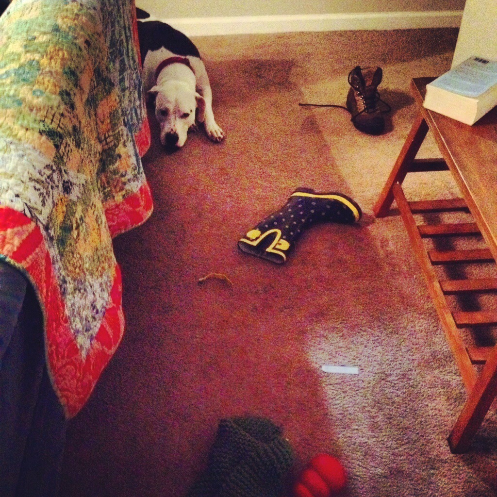 I mean, they’re about to get cleaned. There’s nothing on any of them that I or my husband didn’t eat and survive eating. There’s no logical reason, besides maintaining some sort of regimented order that impacts nothing, that I should take the time and energy to yell at her. So I made a new rule. Rather, I rescinded the rule that Lois can’t lick dishes, and we are all better for it. That worked so well that I’ve stopped getting upset that she moves all of the boots and Christmas decorations into new spots when we’re gone. Whatever. She doesn’t eat anything, she just puts them in new spots. Who am I to decide where all of the thing we own go?