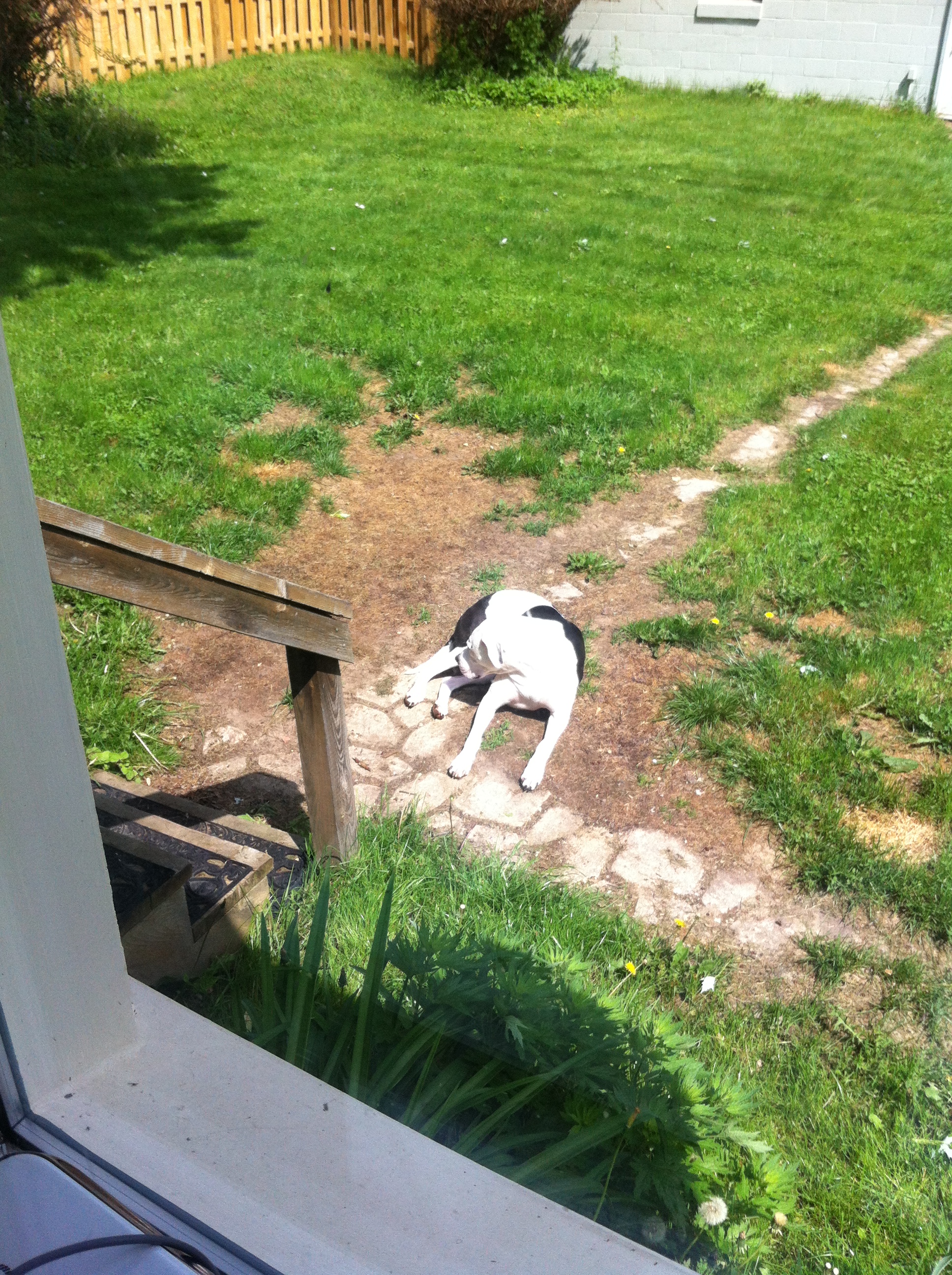 What I have been entirely surprised by is her change in behavior. This creature, who has never sat or slept anywhere but on a piece of human furniture, now sits and sleeps on the floor. A lot. And we never told her she had to. She plays outside by herself. She gets a toy and amuses herself. Like a dog. Like a real, mentally and emotionally stable canine. Weird. And weirder, she seems totally fine with it.