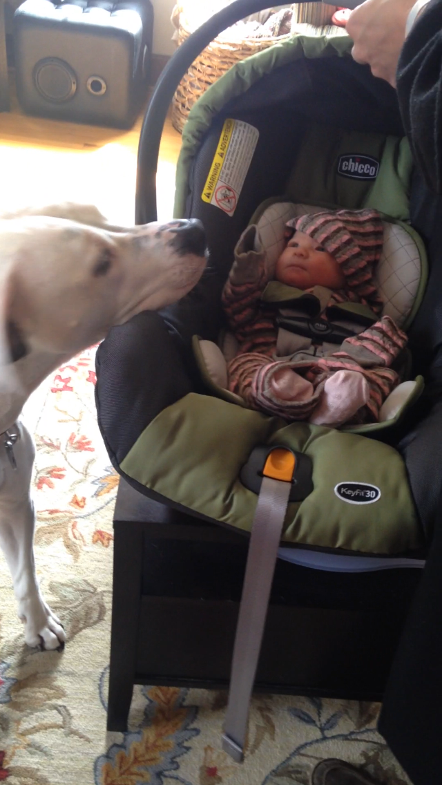 I wasn’t worried about Lois. I don’t know why. I figured she’d sort it out. So I wasn’t surprised when she did. From almost the day we brought our daughter home, she has understood that the tiny person is breakable and if you want to lick it, you have to wait until no one is looking. She wants to be involved, sitting right next to me as I nurse, making sure we know the baby is awake at 4 am (don’t worry, Lois. We know), but if she’s not allowed to be, she doesn’t get upset. She’ll just try again next time.