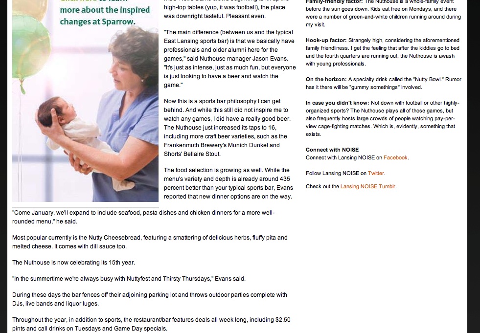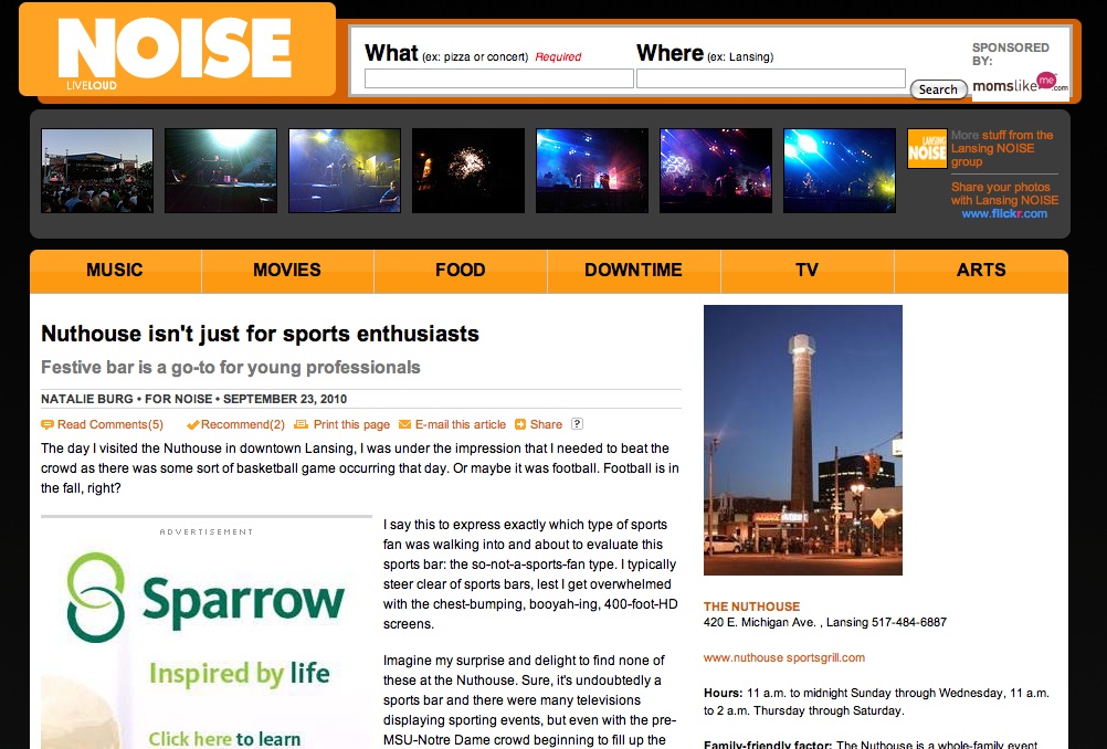 - Lansing State Journal, “Bar Spotlight,” Noise Entertainment Section